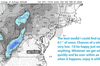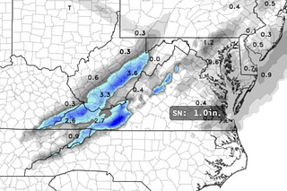 We might get an inch, it'll look pretty if you're up between 1-7 AM Monday morning, but once again, we missed the big one by 100 miles.