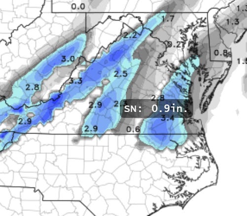 Snowfall prediction as of now: I agree with the models that about 3/4 of an inch of snow will fall from the clouds. Will it make it to the ground and stick? It might make it to the ground if it falls fast enough and temps are 37 degrees or lower. It will not stick. Ground temperatures have been too warm and won’t fall below freezing. Best chances are small brush exposed to the air which might have a dusting if the snow is heavy enough. If you lived at 500 feet, literally at the top of a Norfolk skyscraper, you have a better chance of seeing snow.