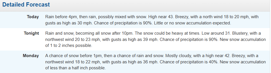 Beware the wind with the system: this is a true northeaster with power outages, debris, falling branches, coastal flooding, etc. If we had more snow we’d have a blizzard, this is a blizzard-light (minor snow)